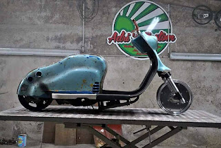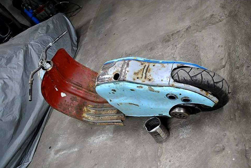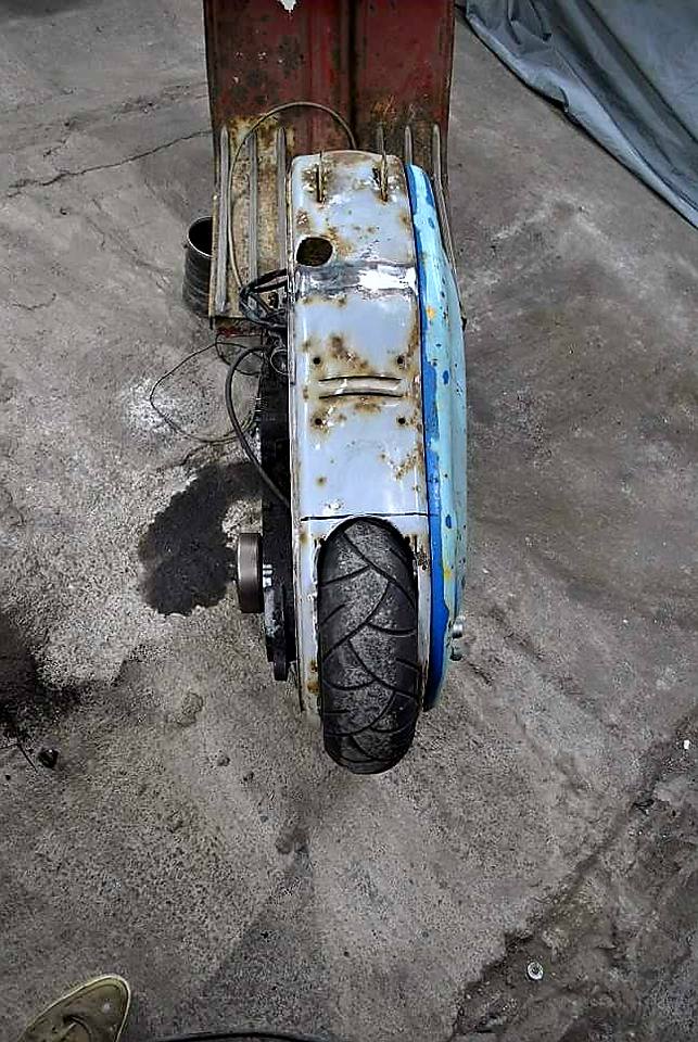 Pega essa LD 1957! Foi montada com um motor de Yamaha Majesty 125 CC! Está a venda por 4.000 €). Interessou? Clique aqui e fale com o vendedor. Abaixo algumas fotos da transformação.